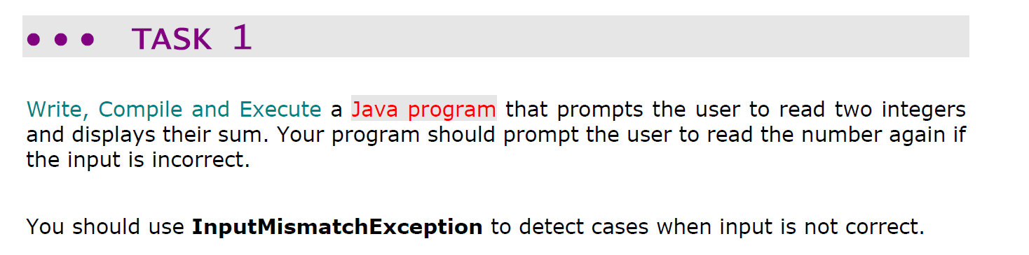 Solved TASK 1 Write, Compile and Execute a Java program that | Chegg.com