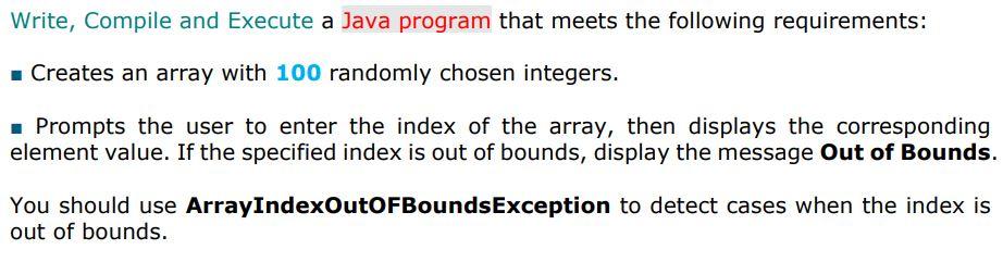 Solved Write, Compile and Execute a Java program that meets | Chegg.com