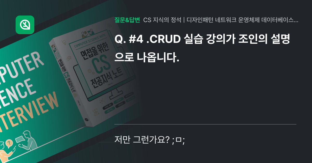 #4 .CRUD 실습 강의가 조인의 설명으로 나옵니다. - 인프런 | 커뮤니티 질문&답변