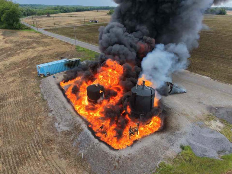 Lightning strike ignites oil tank battery in Crossville
