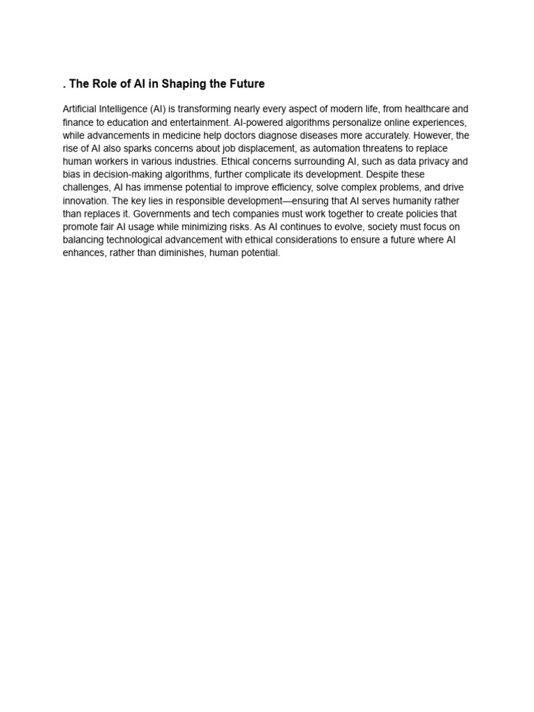 The Role of AI in Shaping The Future | PDF