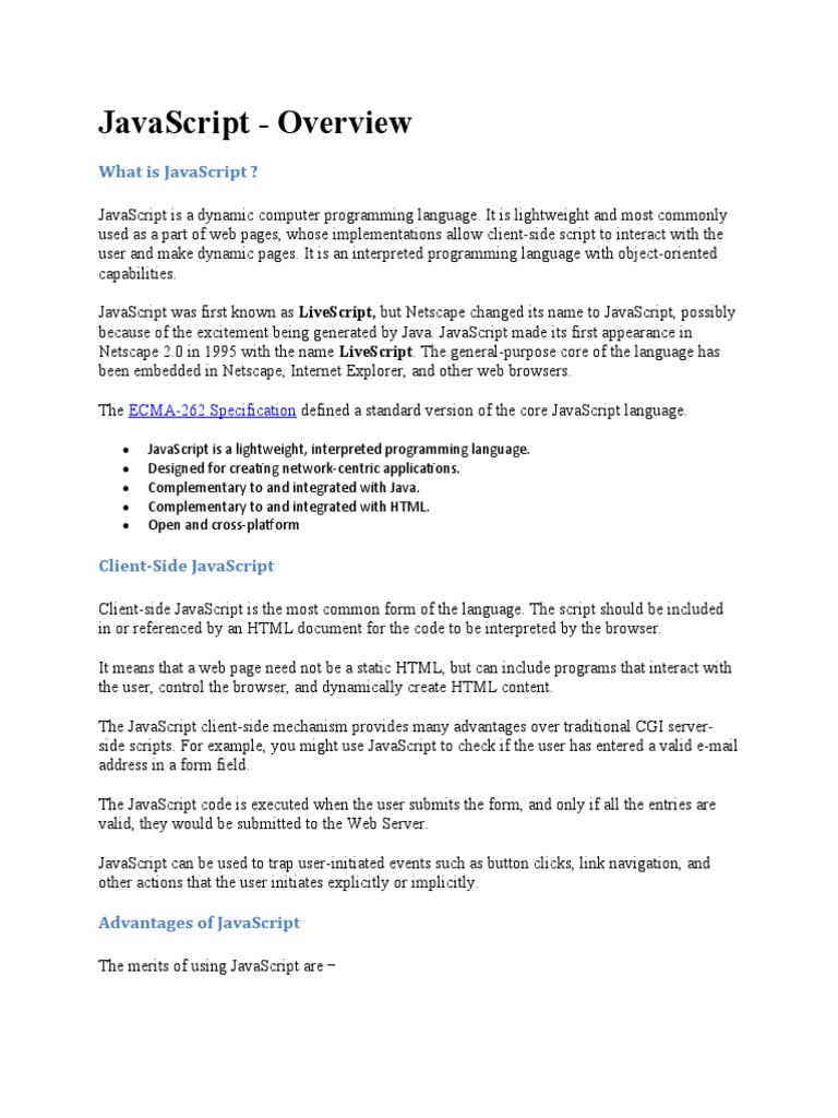Based on this image's title: “JavaScript - Overview | PDF | Dynamic Web Page | Java Script”