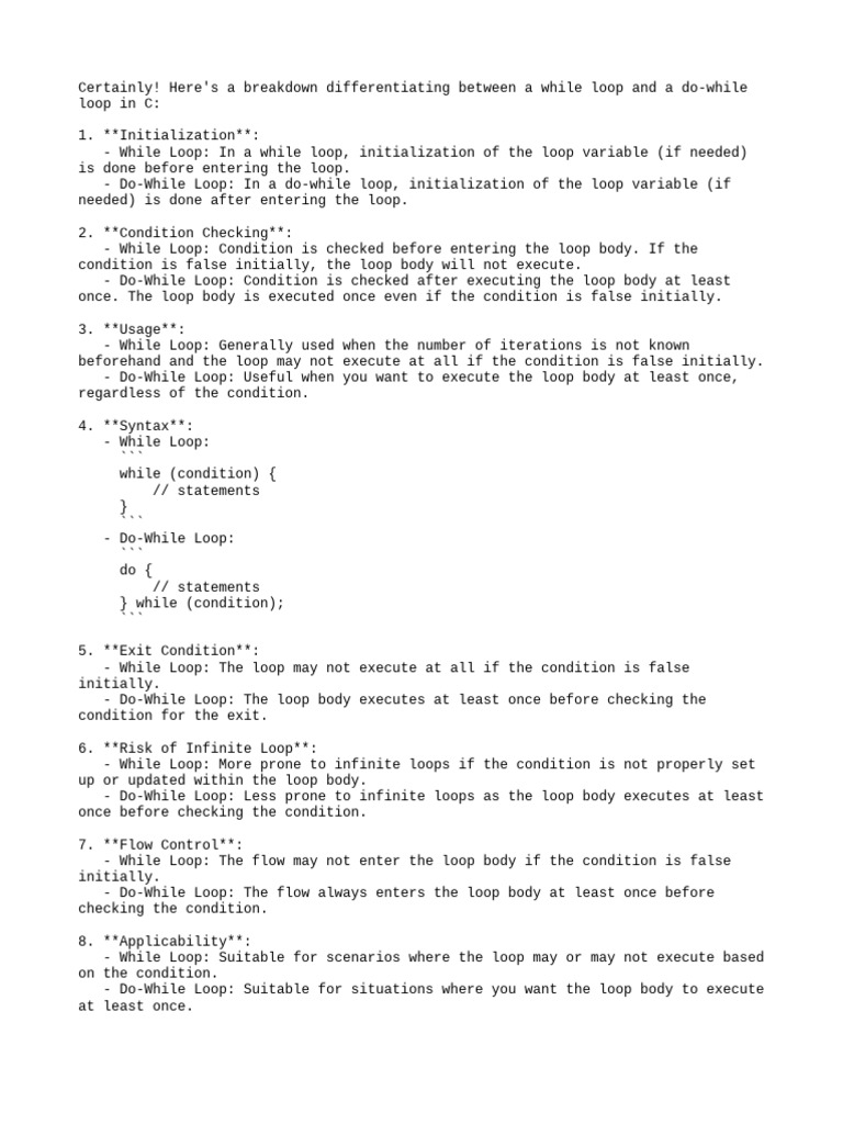 Differentiate Between While Loop and Do-While Loop | PDF | Control Flow ...