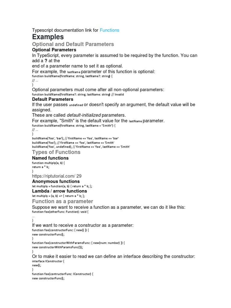 Typescript documentation link for Functions | PDF | Parameter (Computer ...