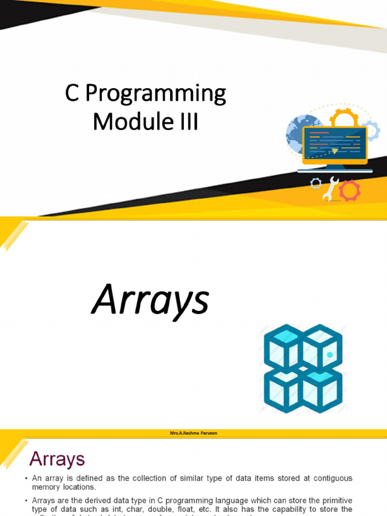 Based on this image's title: “Arrays & String Introduction | Introduction of Arrays and String in ...”