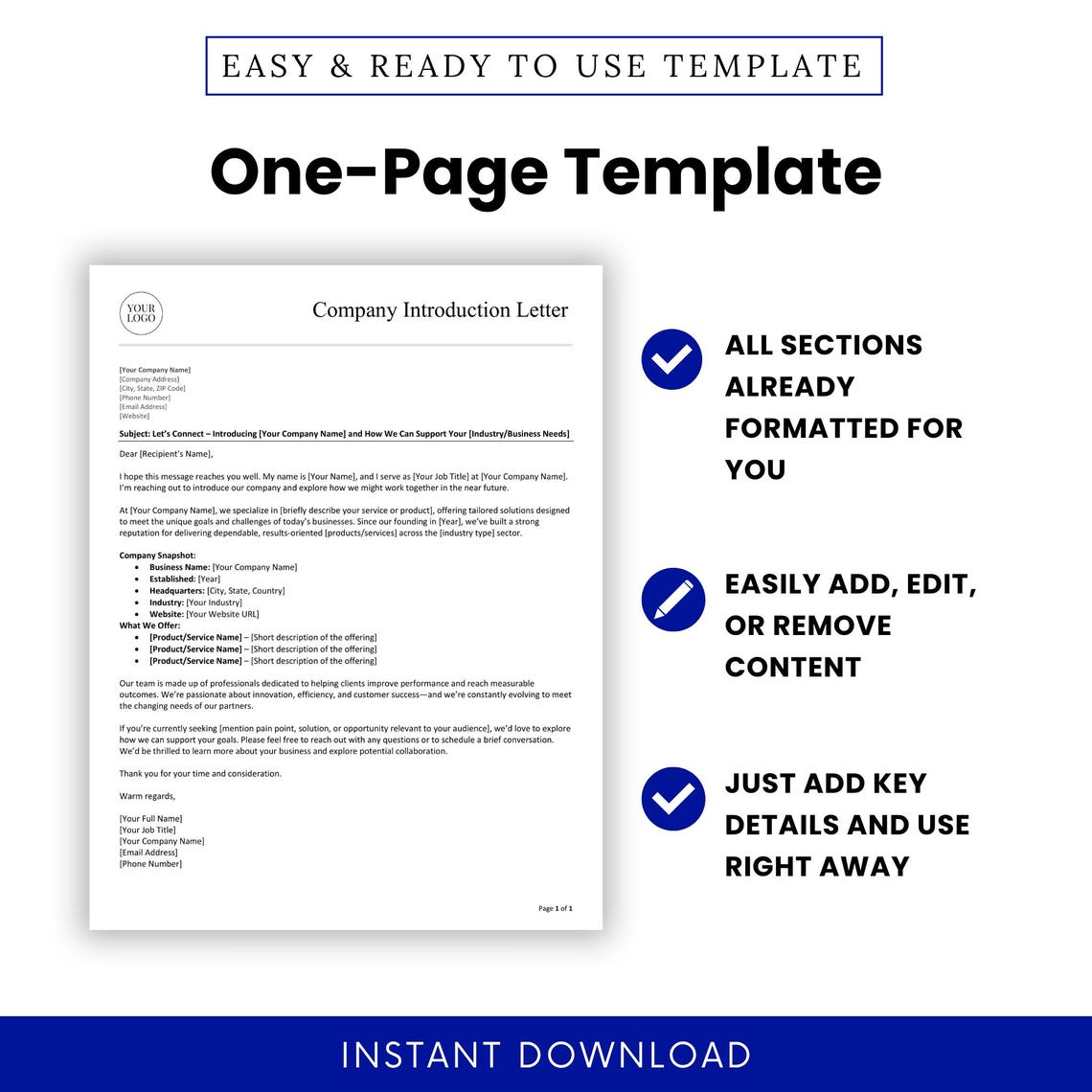Company Introduction Letter Template (word, PDF), Cold Outreach Letter ...