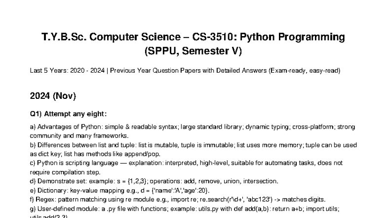 CS-3510 Python Programming SPPU Last 5 Years QP Answers (2020-2024 ...