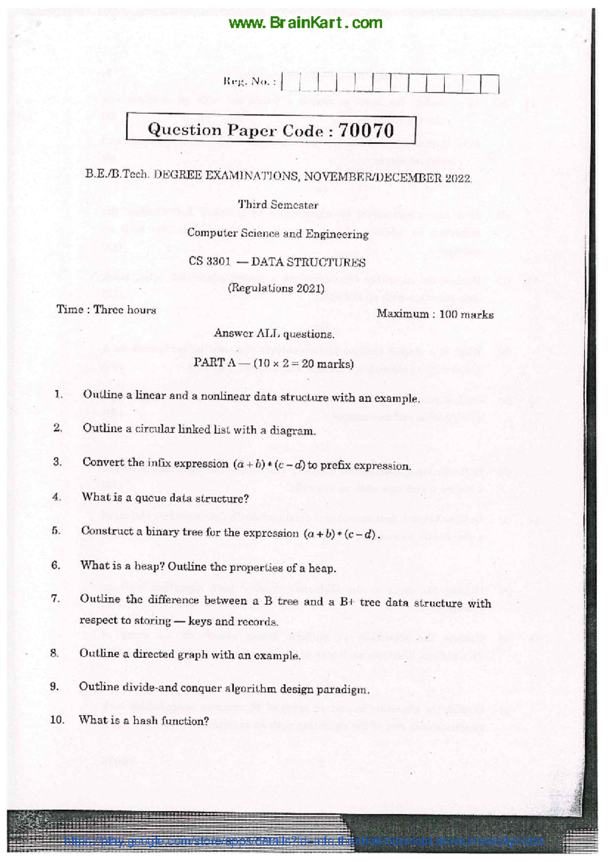 Data Structure CS3301 2021 Reg. Question Paper Nov-Dec 2022 - Studocu