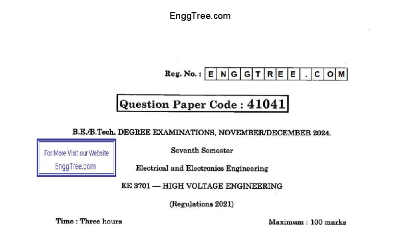 EE3701 High Voltage Engineering Nov Dec 2024 Question Paper Download ...