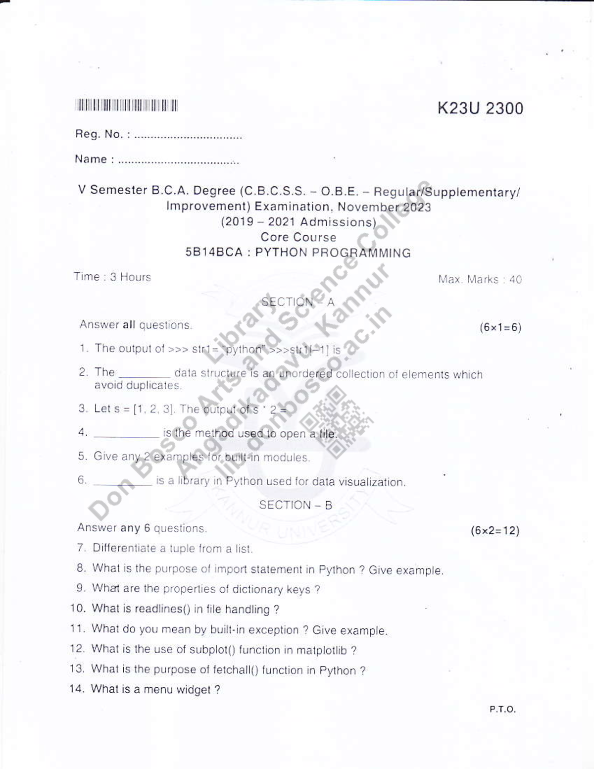 2023 - 2023 Python programming Question paper - lll ll l K23LJ 2300 V ...