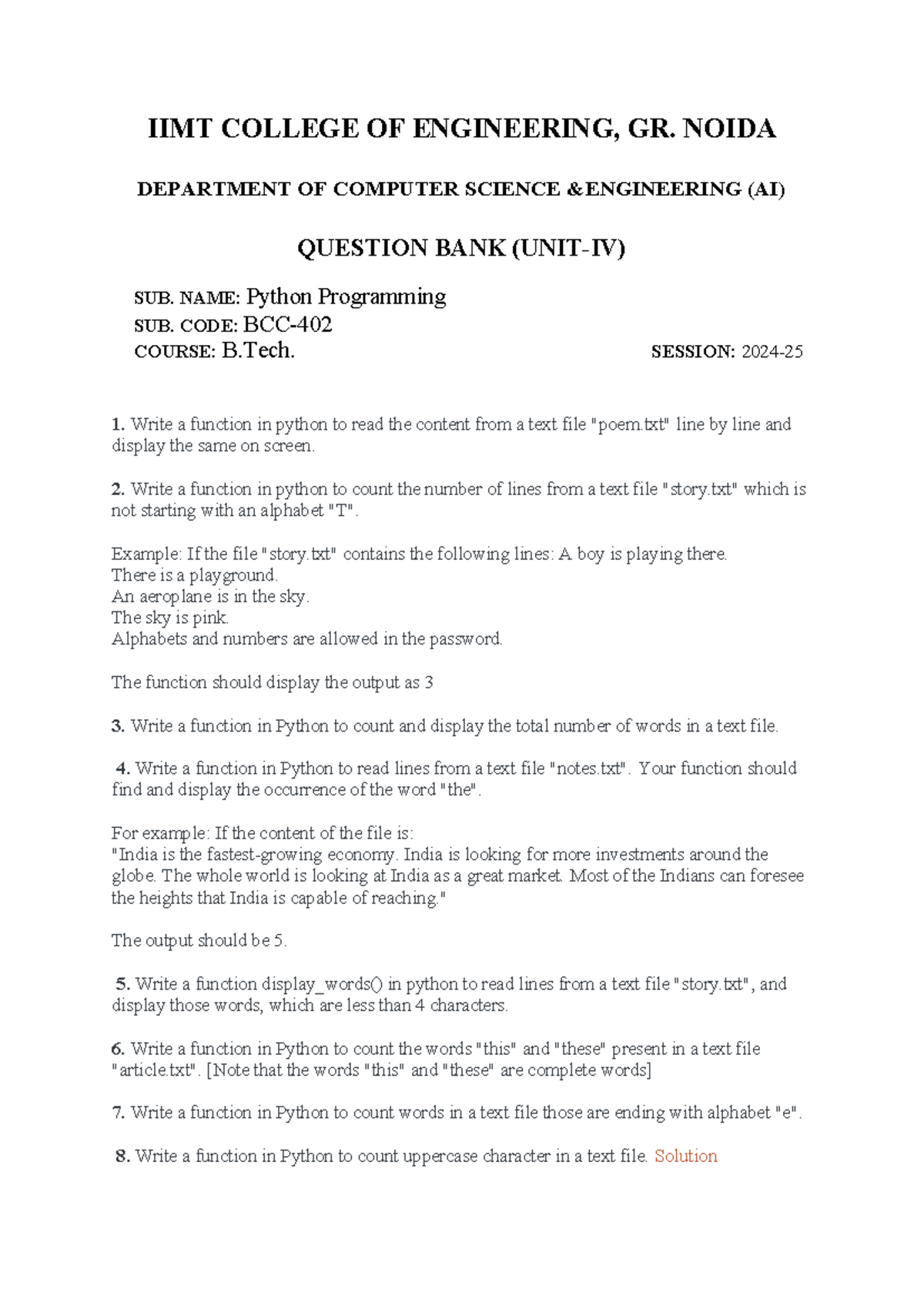 Python Programming Question Bank for BCC302 Semester III - Studocu