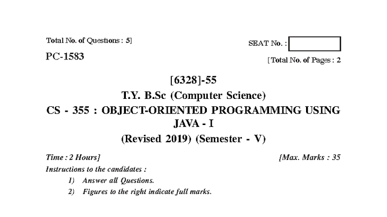 T.Y. B.Sc (CS) CS 355: JAVA Programming Question Paper - Nov 2024 - Studocu
