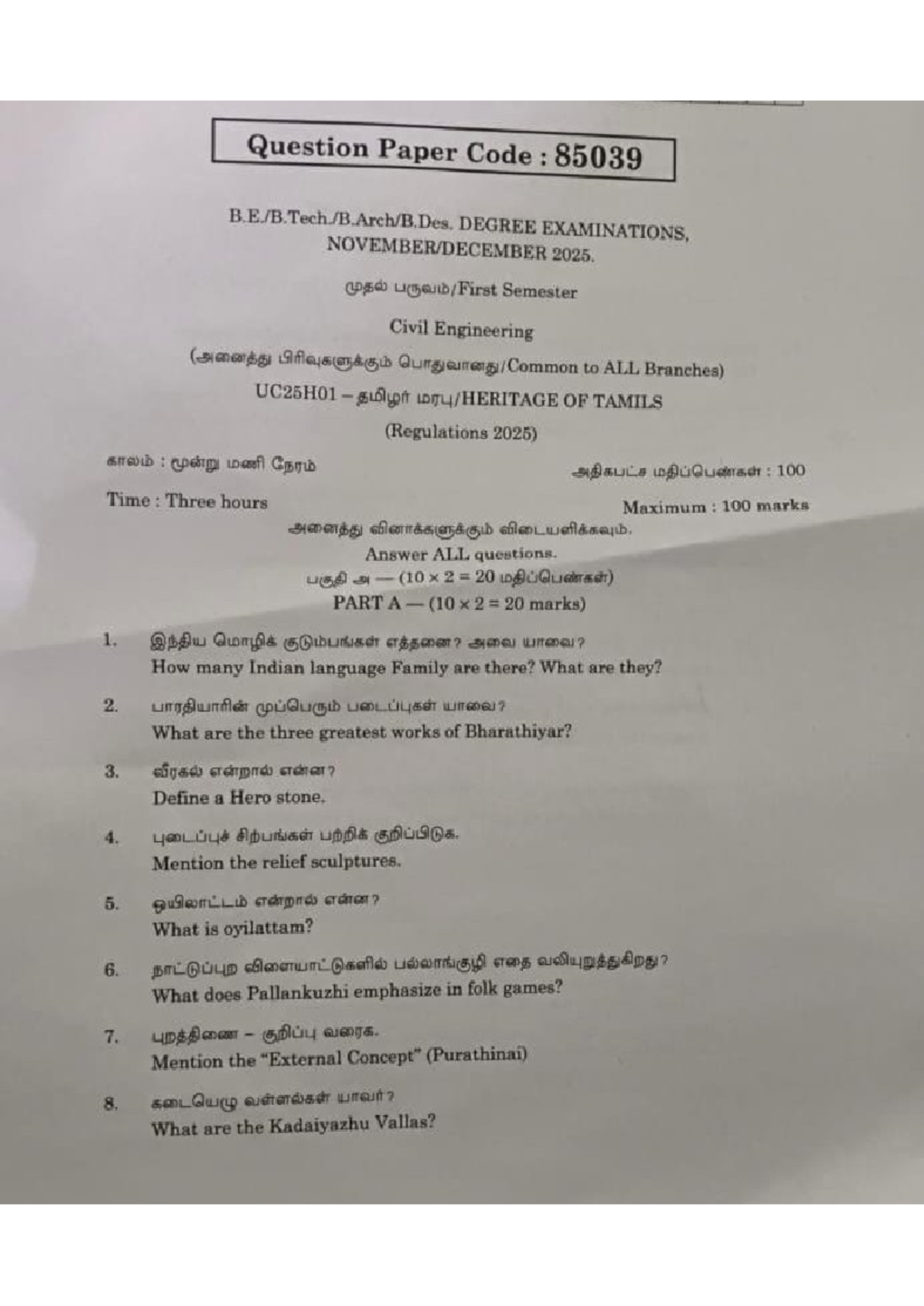 UC25H01 Heritage of Tamil Degree Exam Question Paper Nov 2025 - Studocu