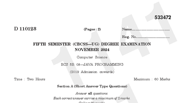 BCS 5B Programming - Old Question Paper (Nov 2024) - Studocu