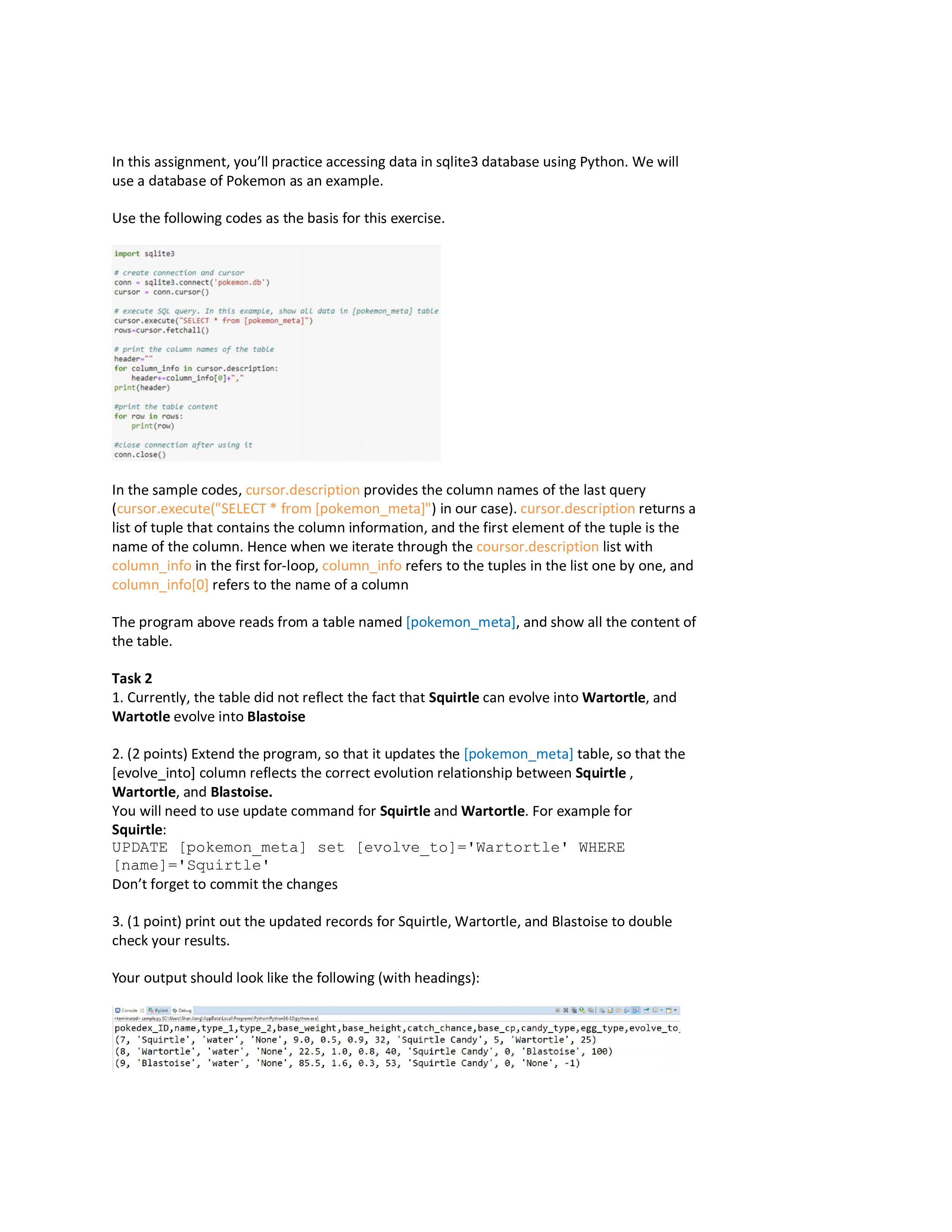 Solved AssignmentWrite a python program using sqlite 3 | Chegg.com