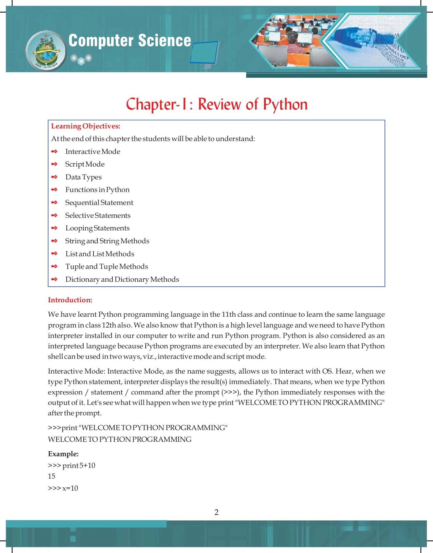 Chapter 2 Python Revision Tour II | Sumita Arora Computer Science with ...