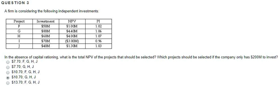 question3 a firm is considering the following independent investments ...
