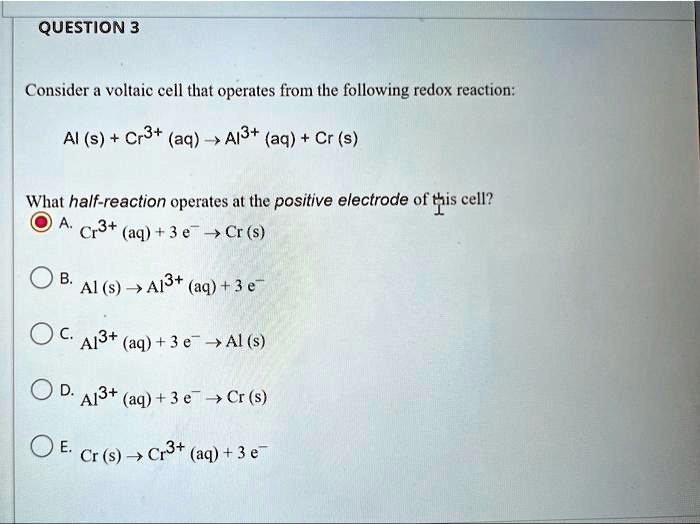 SOLVED: what is the correct option? QUESTION3 Consider a voltaic cell ...