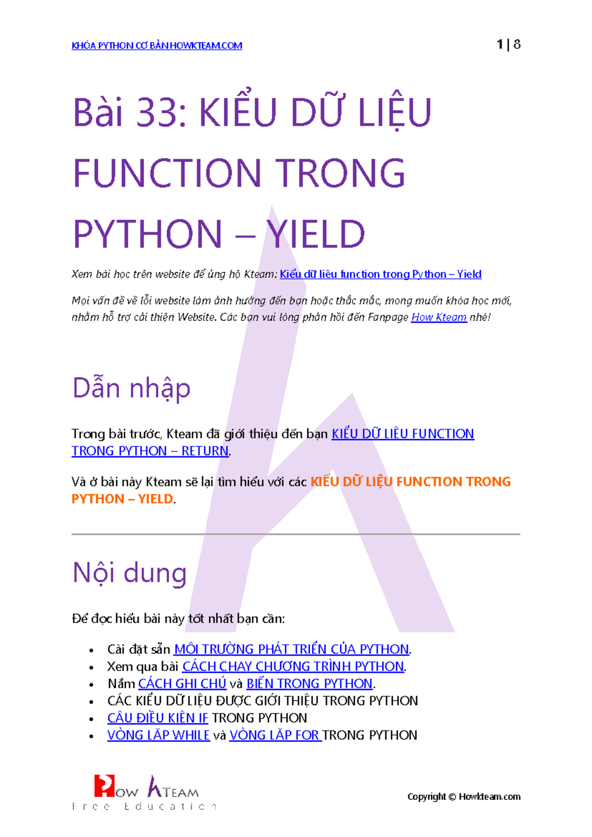 Bài 33 Kiểu dữ liệu function trong Python – Yield Howkteam - Bài 33 ...