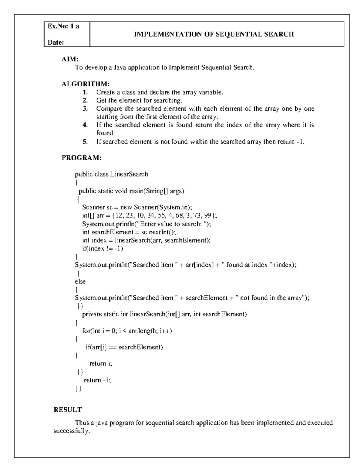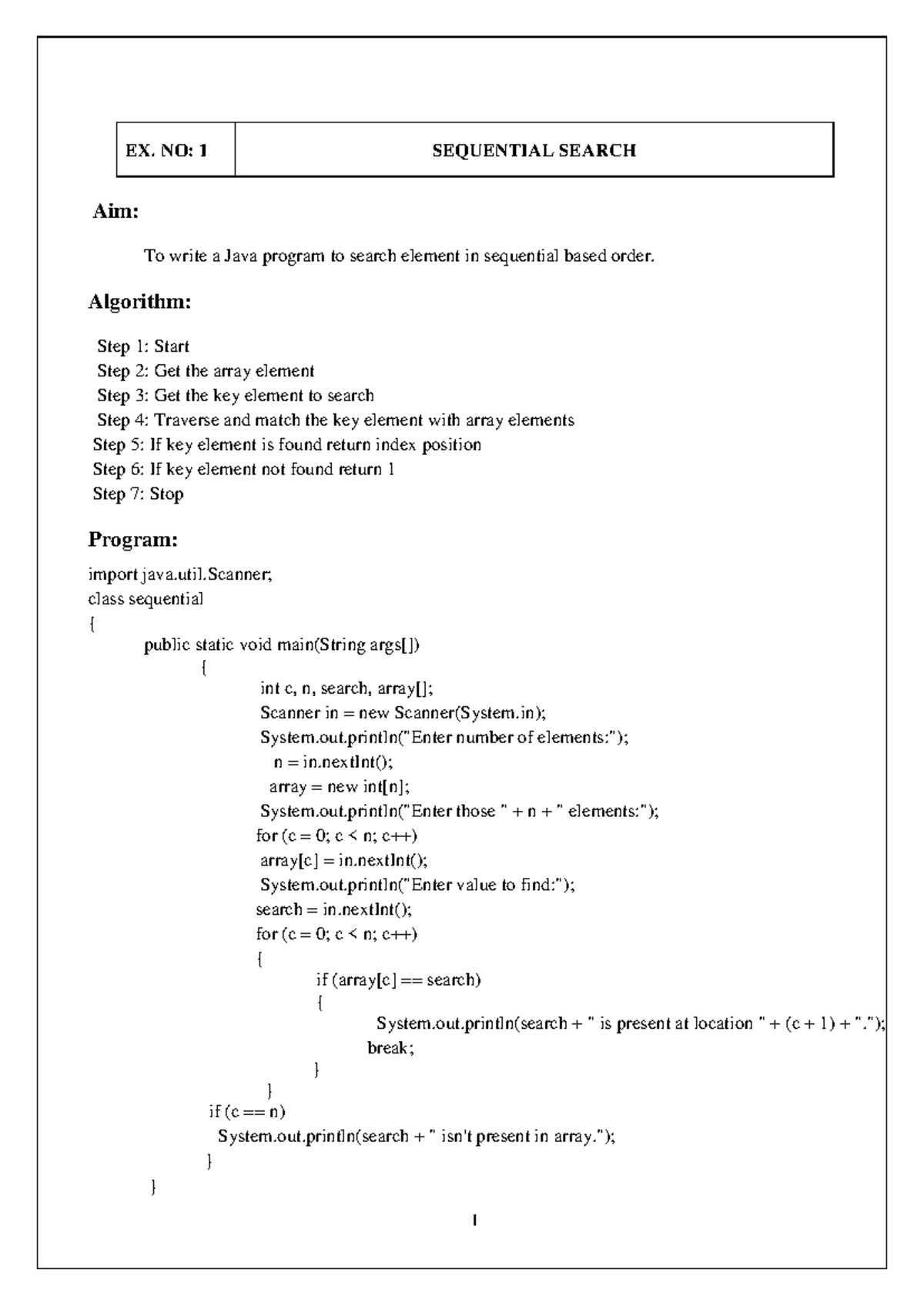 CS3381 - OOPS Lab Manual - Ex: 1 a Java Program for Sequential Search ...