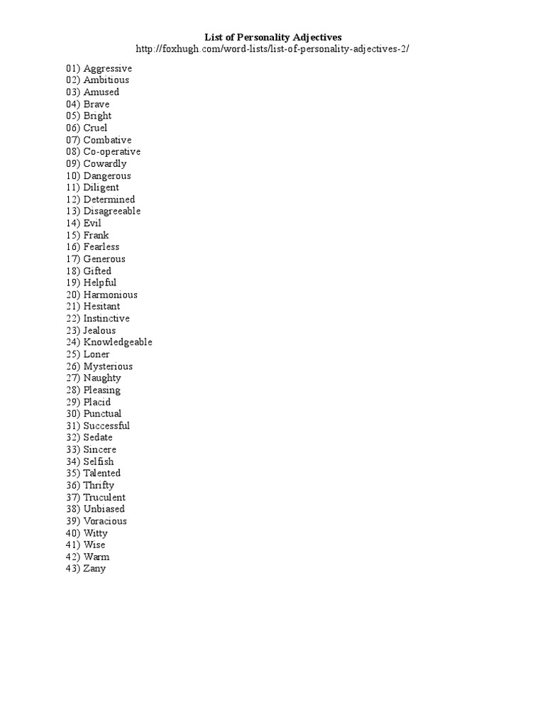 List of Positive Personality Adjectives | Dr. Hugh Fox III
