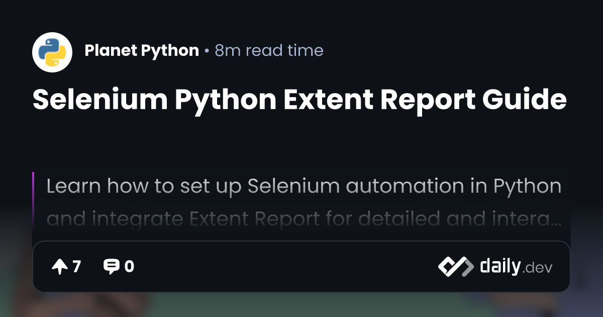 Selenium Python Extent Report Guide | daily.dev