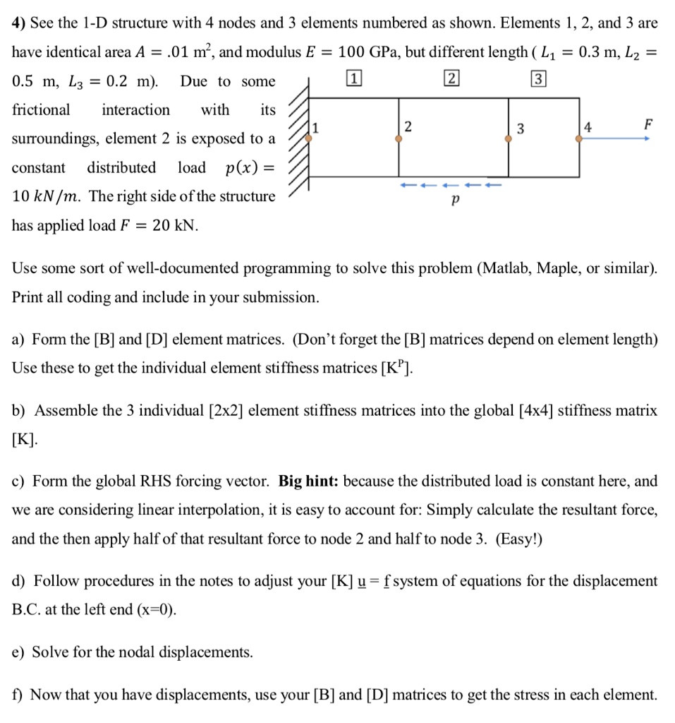4) See the 1-D structure with 4 nodes and 3 elements numbered as shown ...