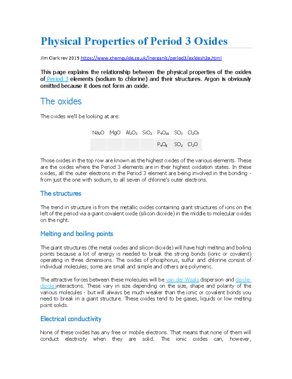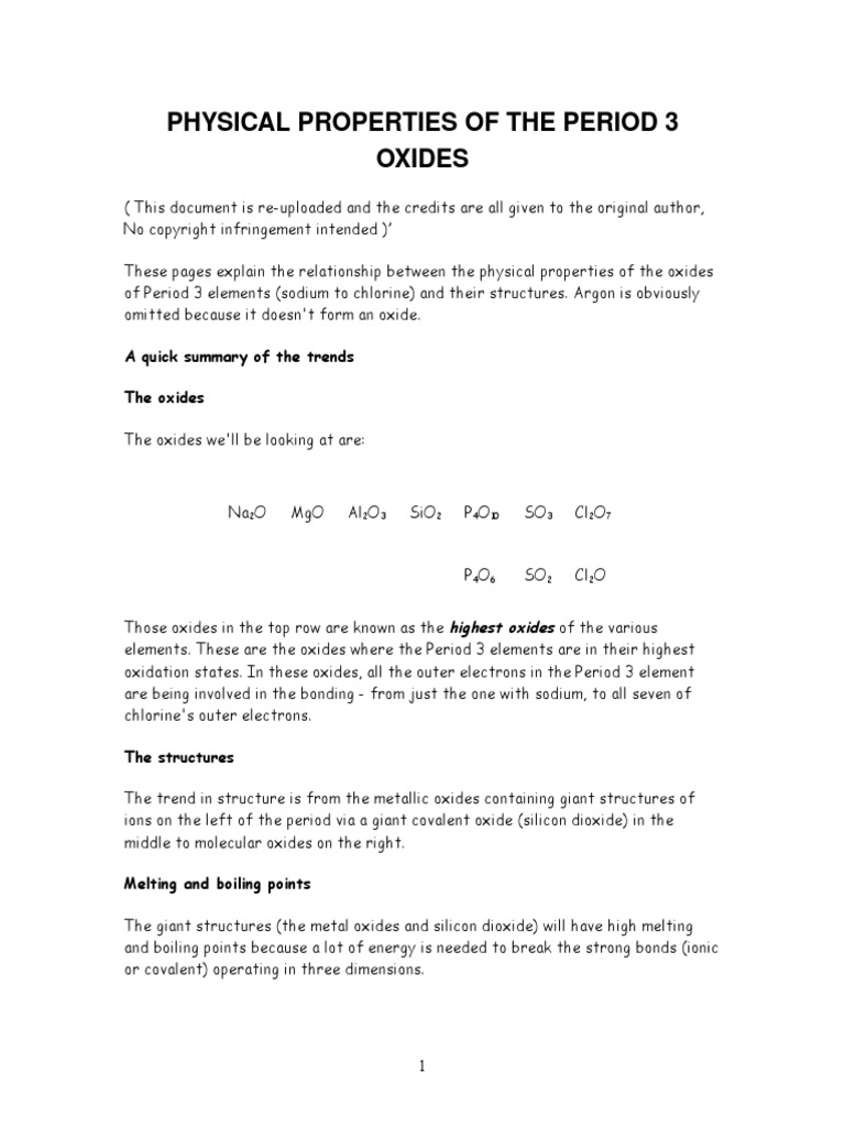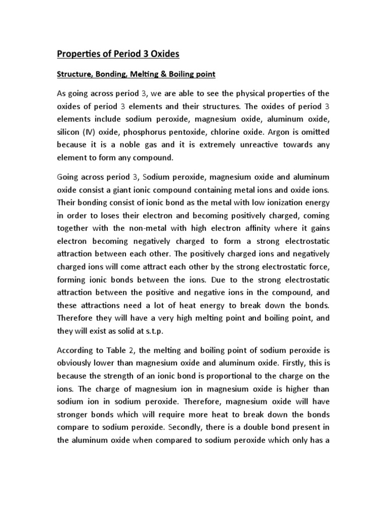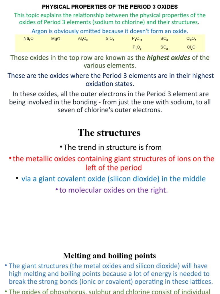 Physical Properties of Period 3 Oxides - Physical Properties of Period ...