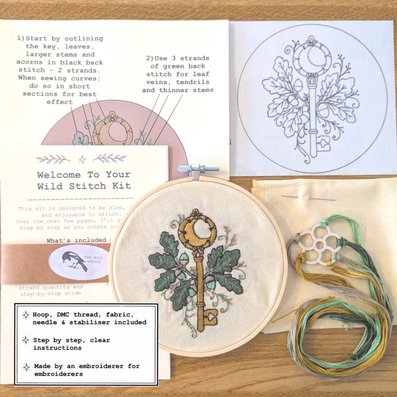 Oak Tree & Key Beginners Embroidery Kit | Hand Stitch a Hoop | Learn ...