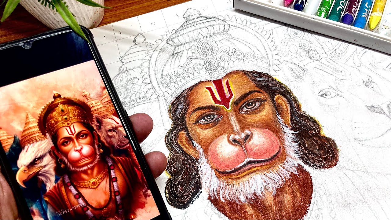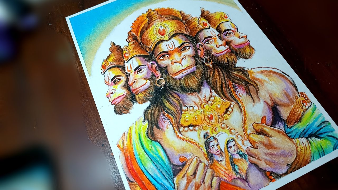 [Part-2] Lord Hanuman Drawing | Panchmukhi Hanuman| Pencil colours| Oil ...