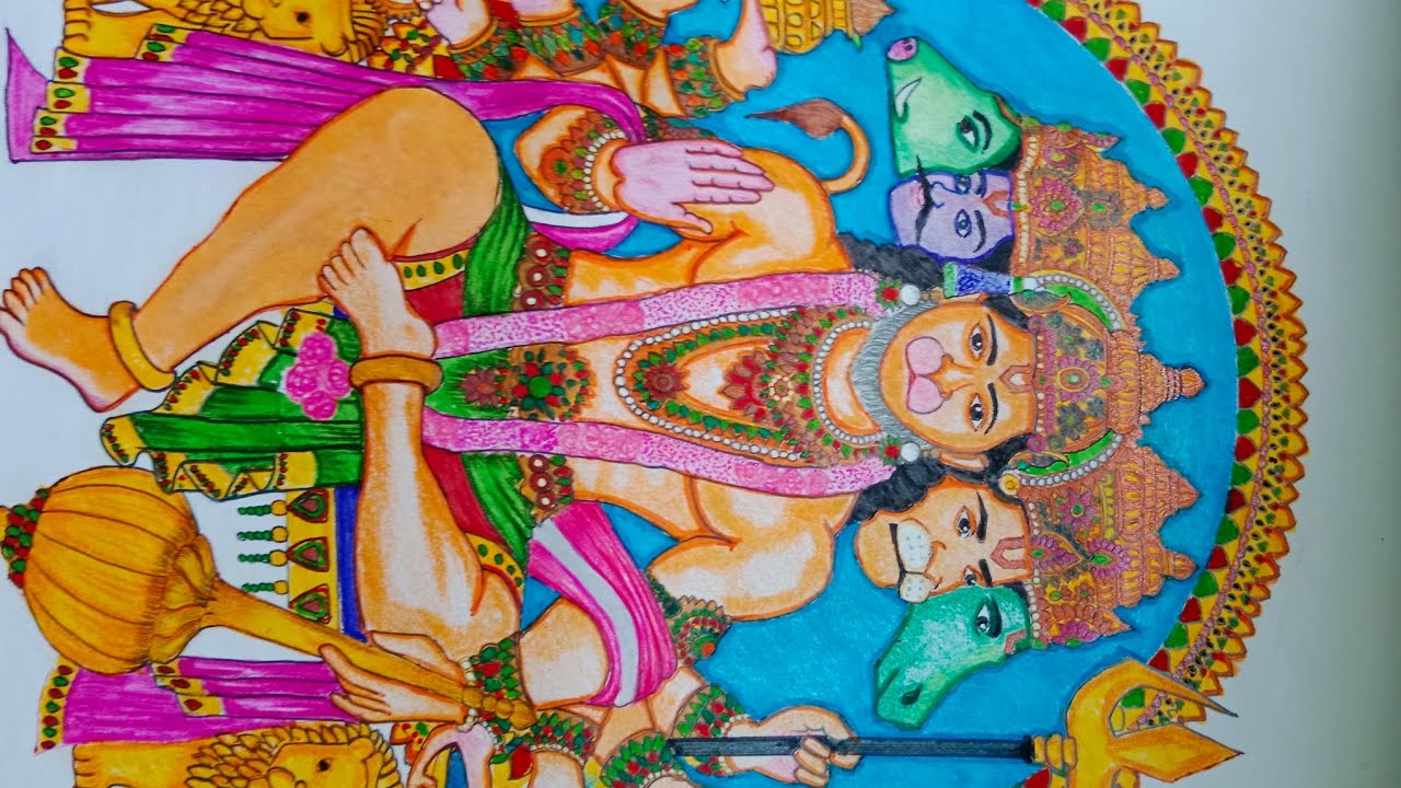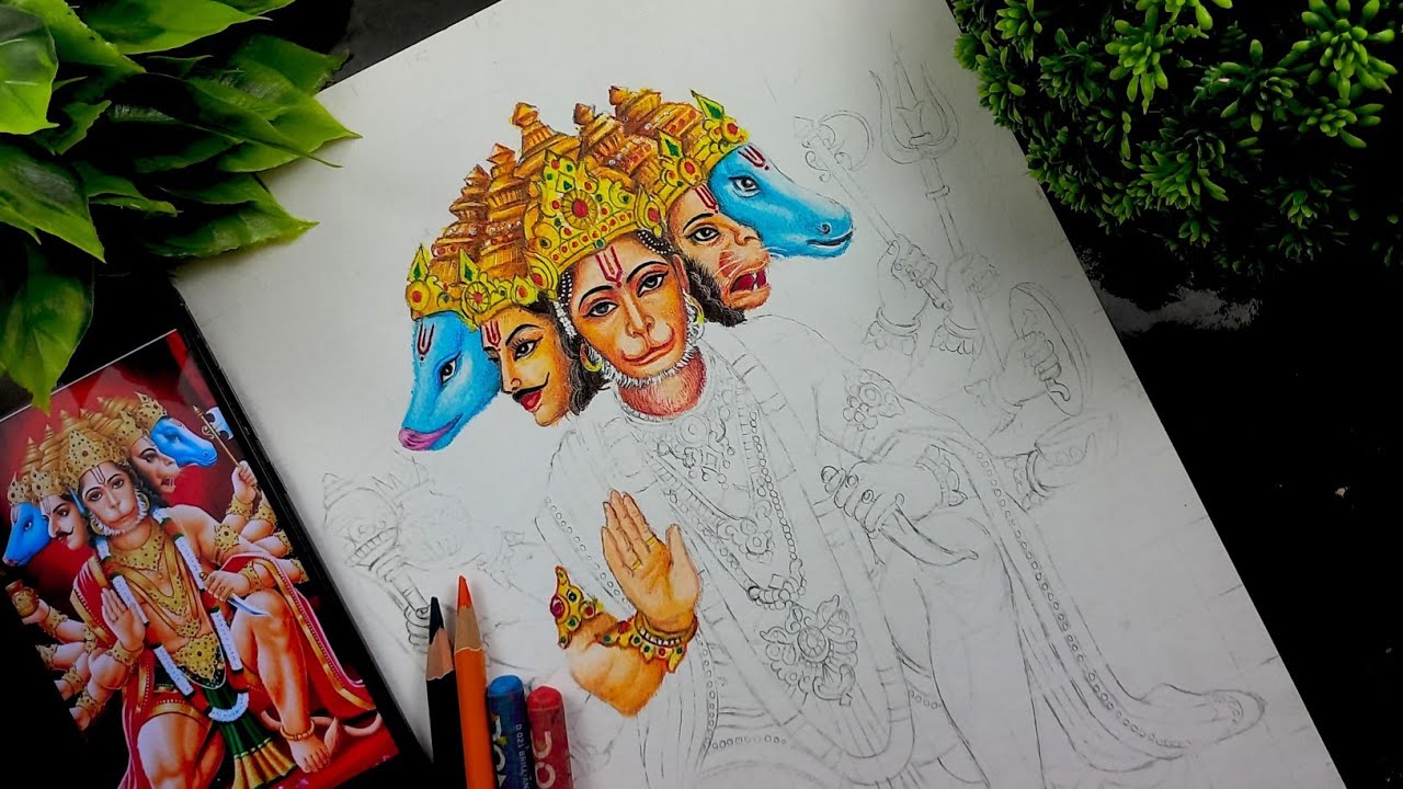 panchmukhi Hanuman Ji painting colour drawing - YouTube