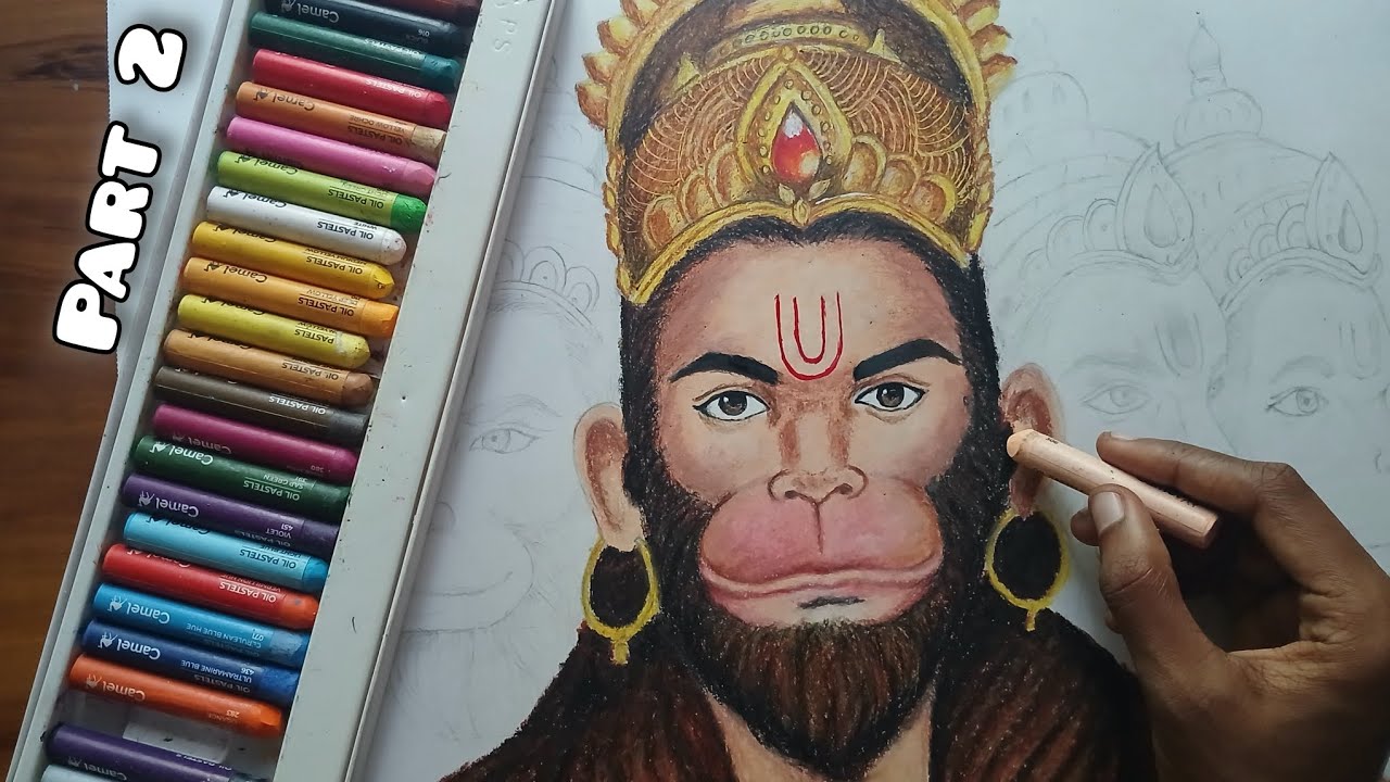(part-2)Panchmukhi Hanuman ji drawing 😍 tutorial, oil pastel colours ...