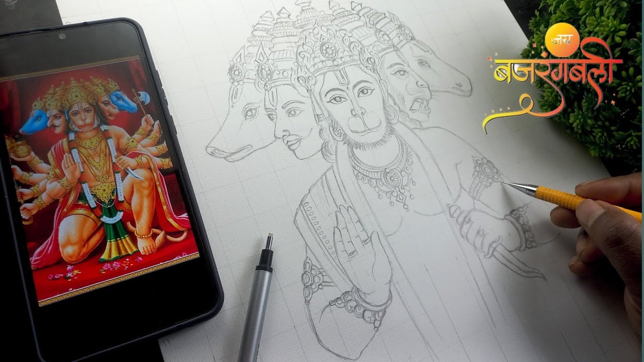 Unleash Your Inner Artist with Panchamukhi Hanuman Ji Drawing 🚩 - YouTube