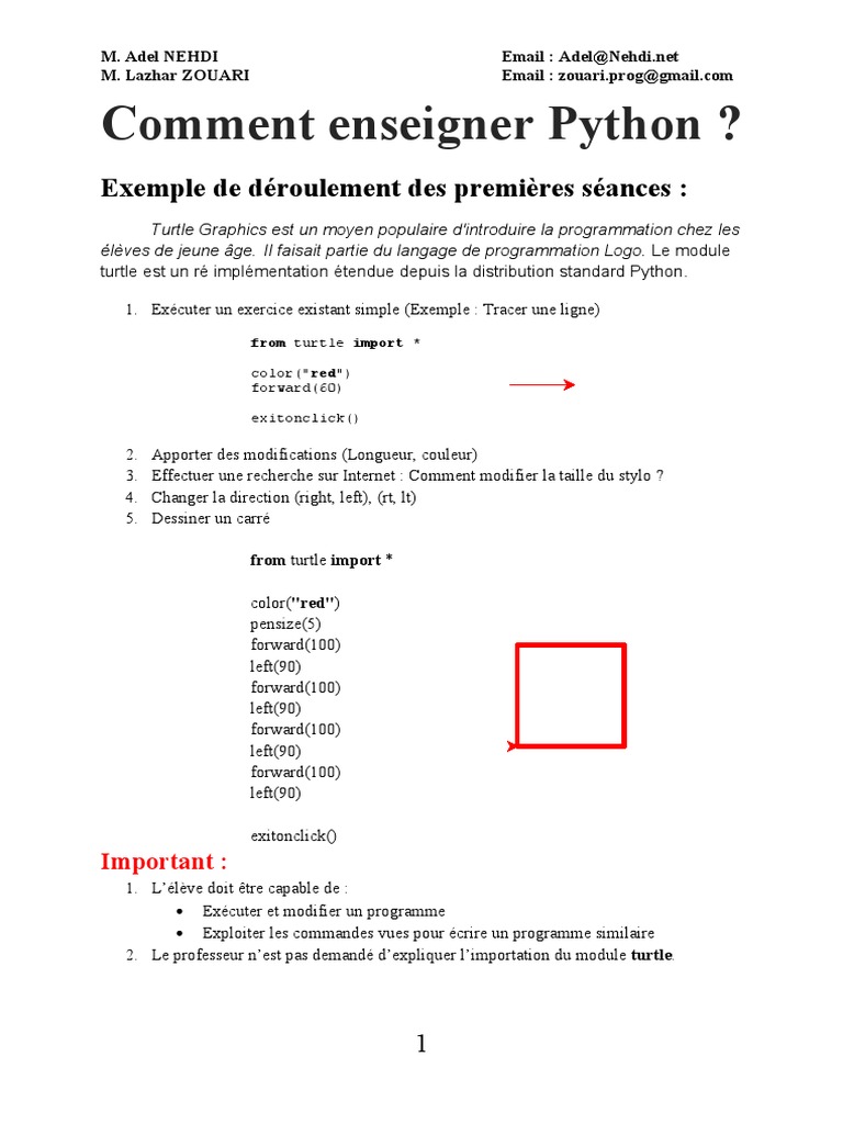 Enseigner Python avec Turtle Graphics | PDF | Python (Langage de ...