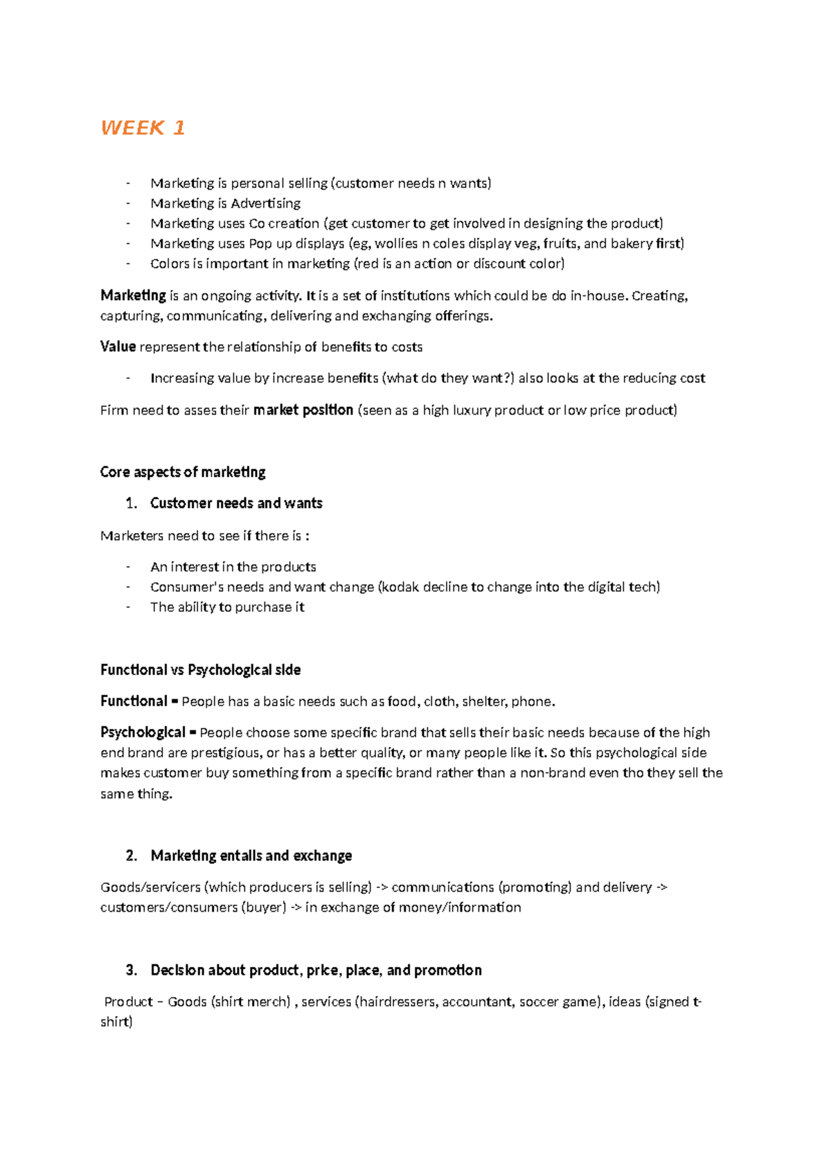 WEEK 1 - Introduction to marketing - WEEK 1 Marketing is personal ...