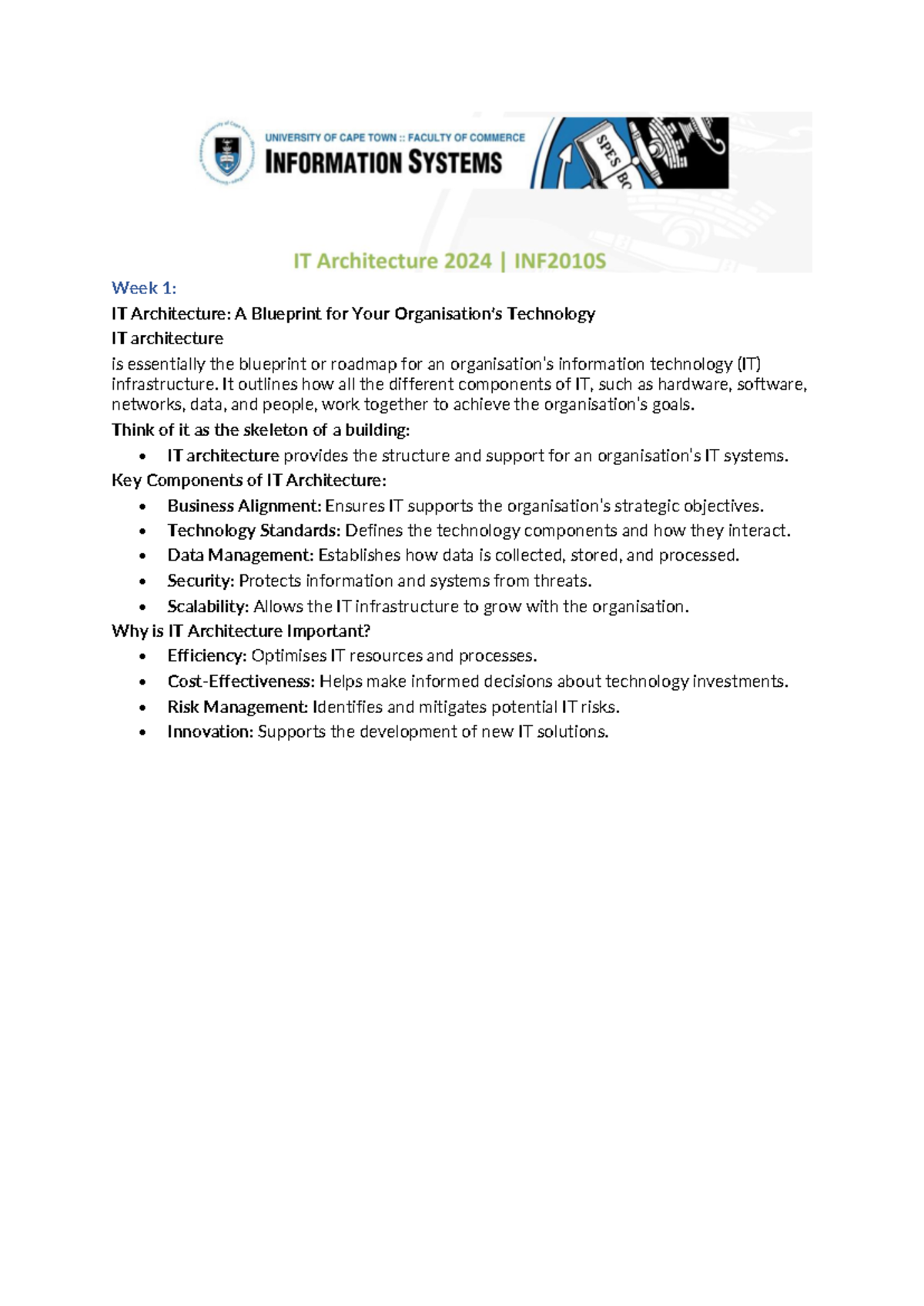 Week 1: Introduction to IT Architecture and Enterprise Design (INF2010S ...