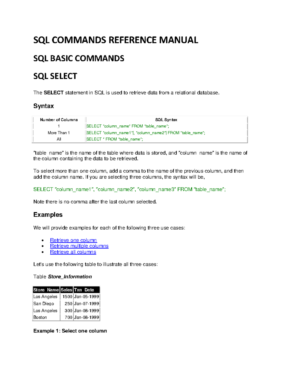 SQL Commands Manual - SQL NOTES - SQL COMMANDS REFERENCE MANUAL SQL ...