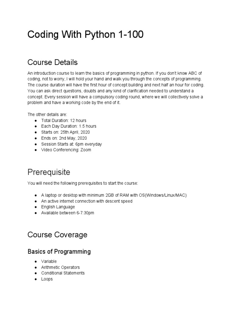Coding With Python 1-100 | PDF | Python (Programming Language ...