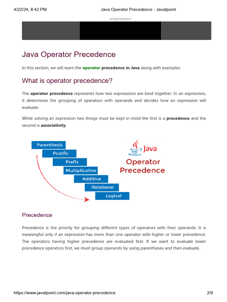 Java Operator Precedence - Javatpoint | PDF | Mathematical Logic ...