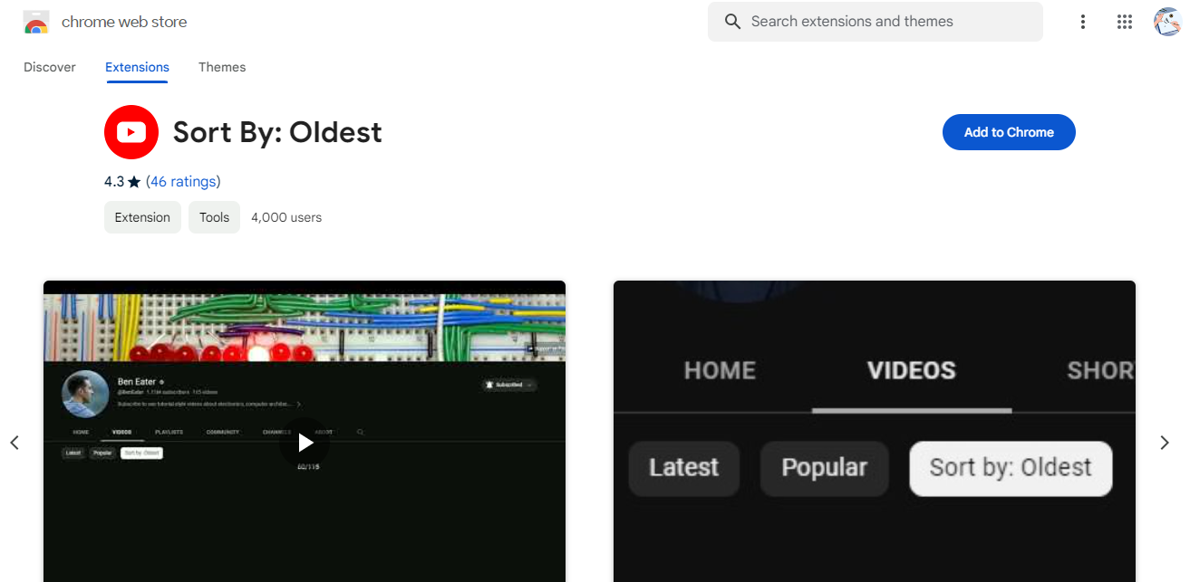 Sort YouTube Videos Google Chrome 용 - 확장 프로그램 다운로드