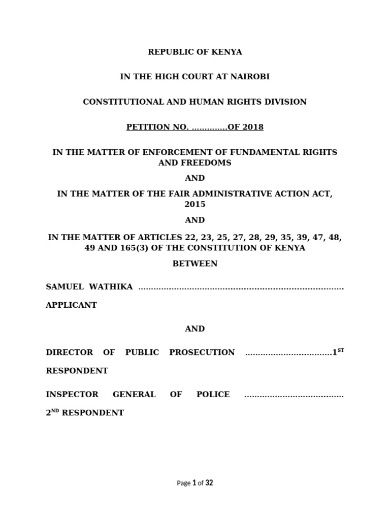 Sam Wathika Vs Inspector General of Police and Others - Application For ...