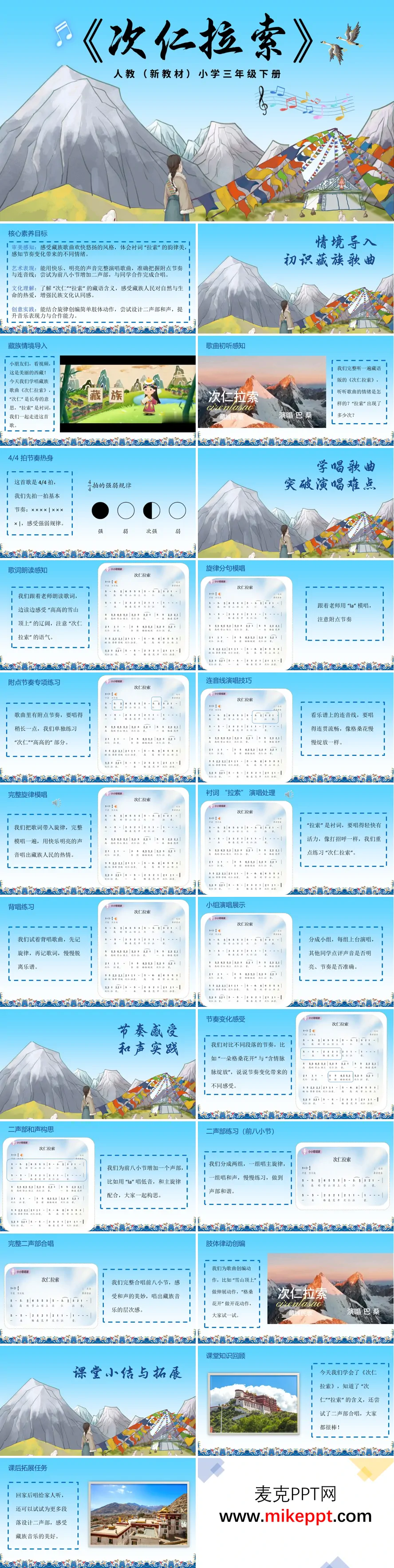 第四单元《次仁拉索》三年级下册音乐人教ppt课件(教案)-麦克PPT网