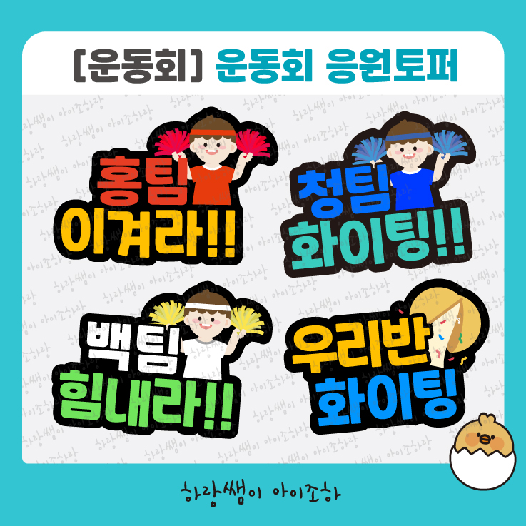 유치원 운동회 토퍼 4종 / 홍팀, 청팀, 백팀 체육대회 응원 도구