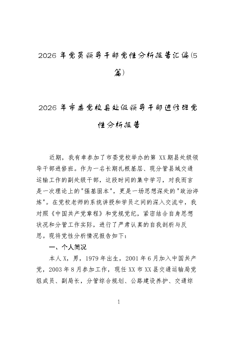 第12014期.2026年党员领导干部党性分析报告汇编(5篇)