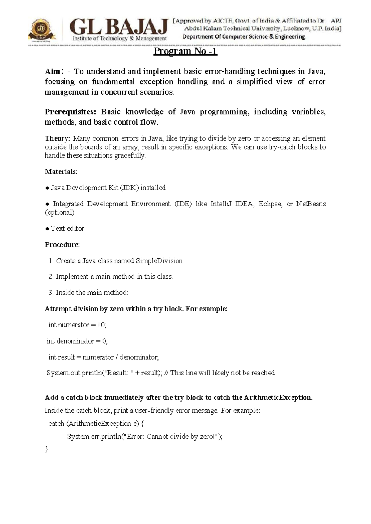 DAA Program 1 - Java Exception Handling Techniques and Solutions - Studocu