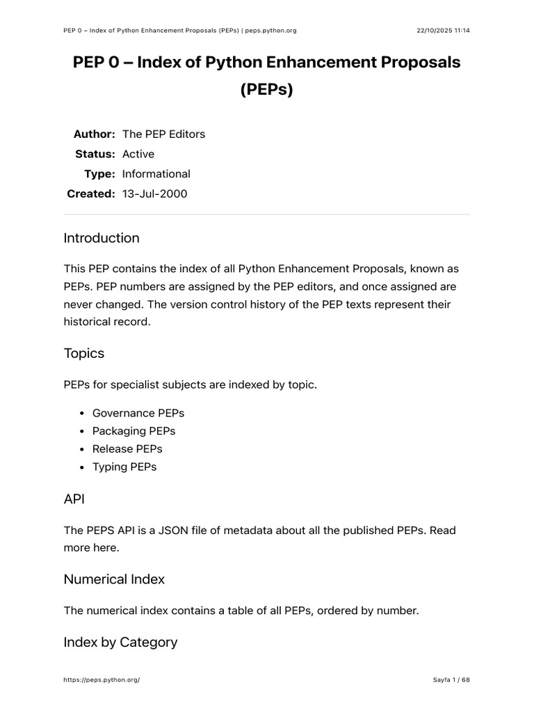 PEP 0 - Index of Python Enhancement Proposals (PEPs) | PDF | Python ...