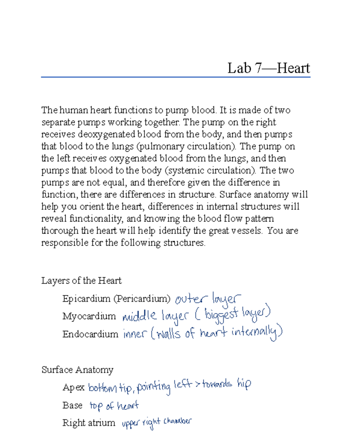 practical heart structure list - ####### Lab 7—Heart The human heart ...