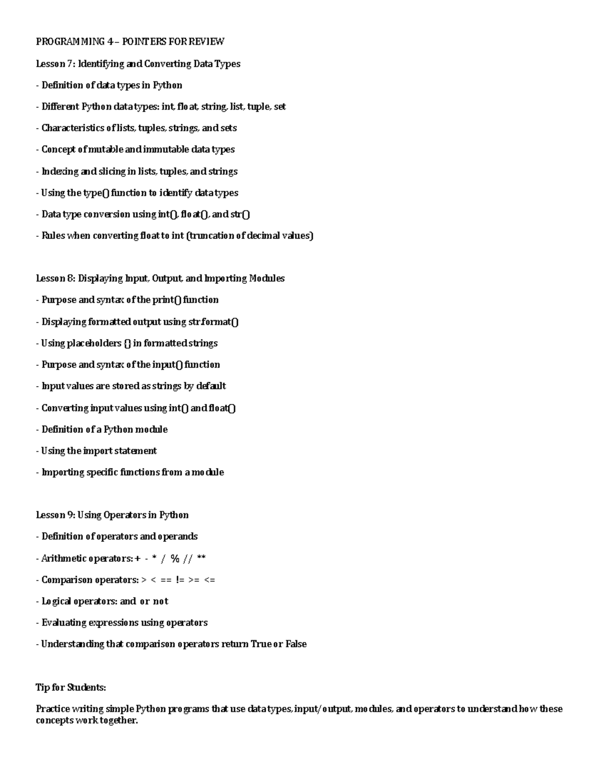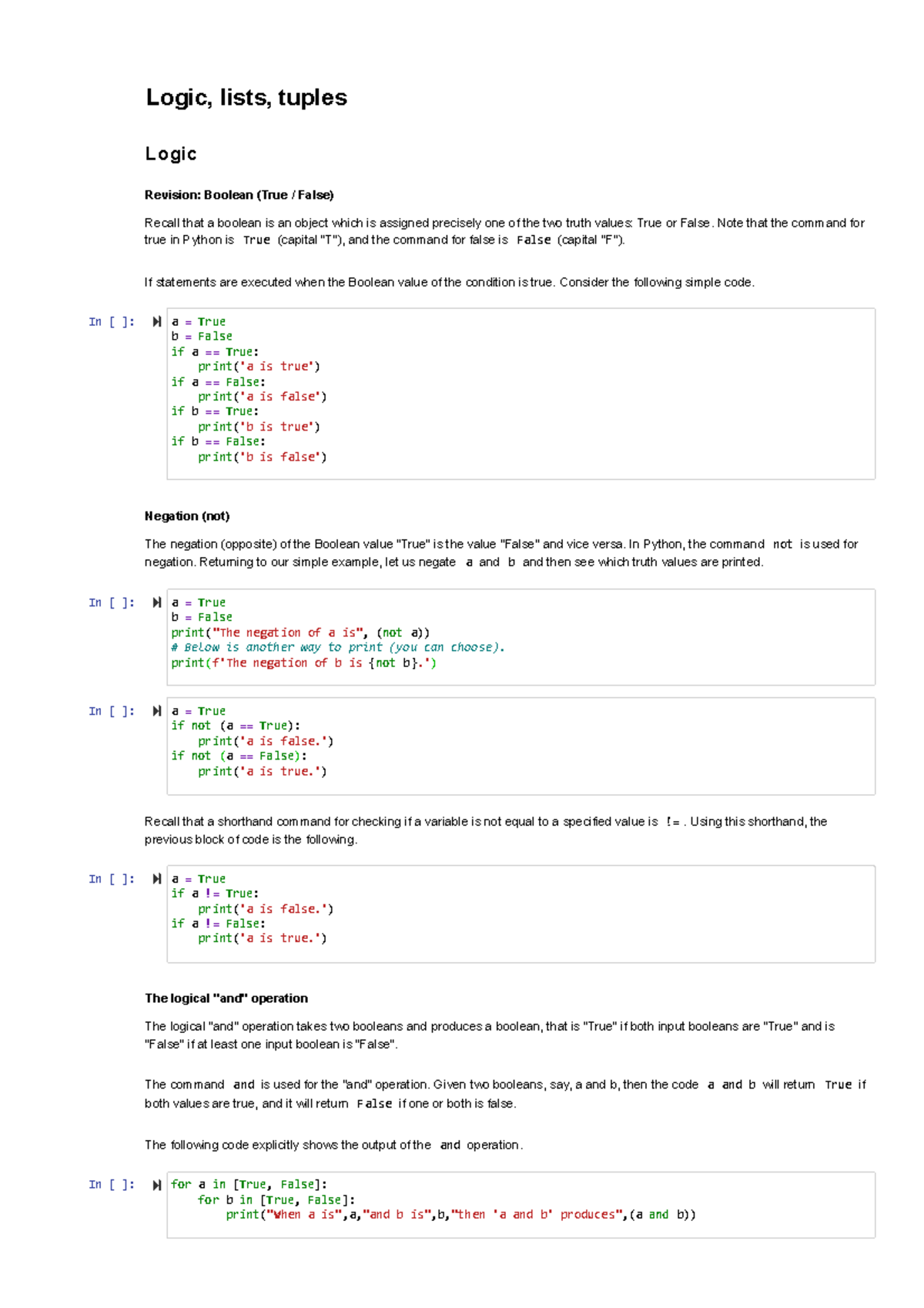 Lecture 8 - Logic, Lists, and Tuples Revision Notes - Studocu