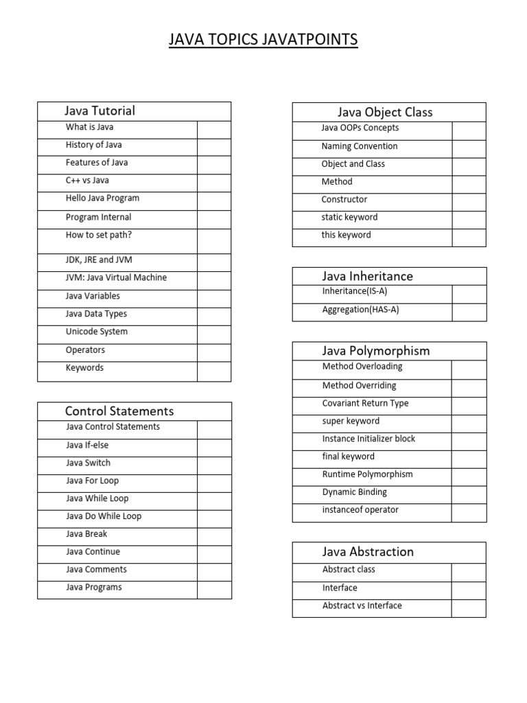 Based on this image's title: “Java Topics Javatpoints | PDF”