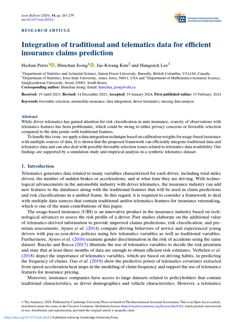 Integration of Traditional and Telematics Data For Efficient Insurance ...